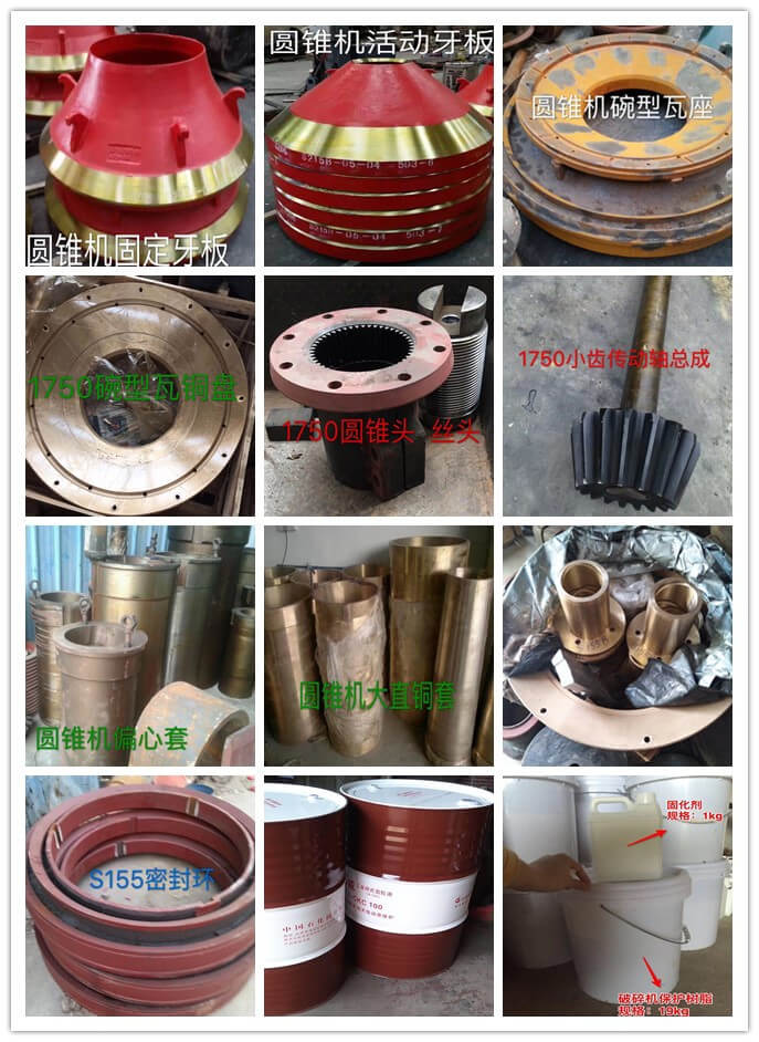 機架銅(tóng)套、主軸銅套、軋臼壁、破碎壁、碗形瓦、推(tuī)力板、密(mì)封環、齒輪、固化劑、專用油等。