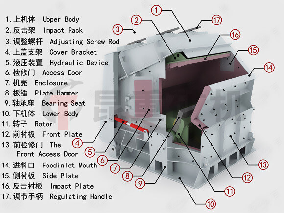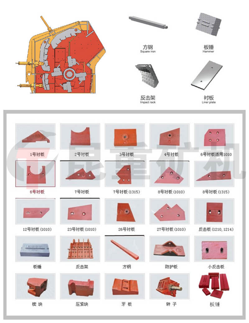 反擊式破碎(suì)機配件示意圖: