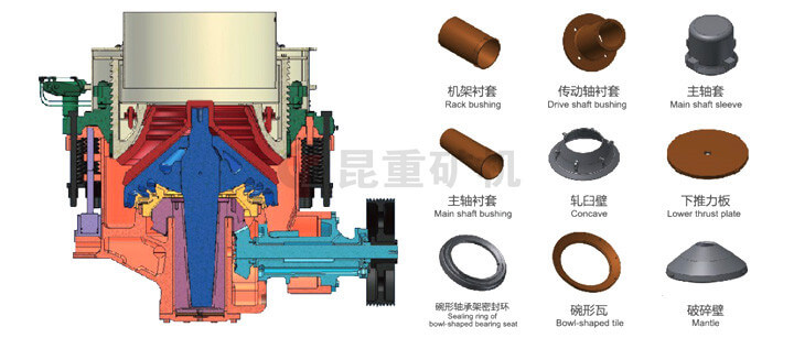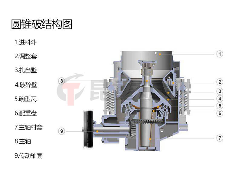 3、圓錐破均包含(hán)液壓調整機構,便於快速調(diào)整圓(yuán)錐破排料口大(dà)小。