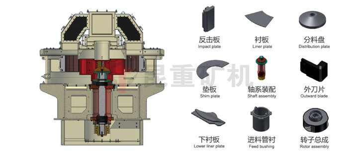衝擊式製(zhì)砂(shā)機配件示意圖: