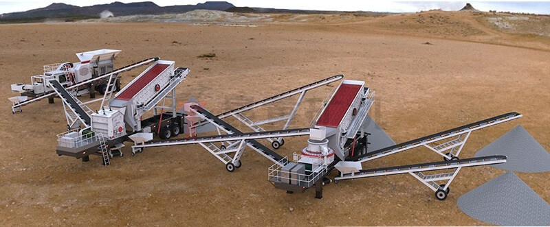 給料+顎破、圓錐破+篩分、製砂機+篩分,三台車組合現場: