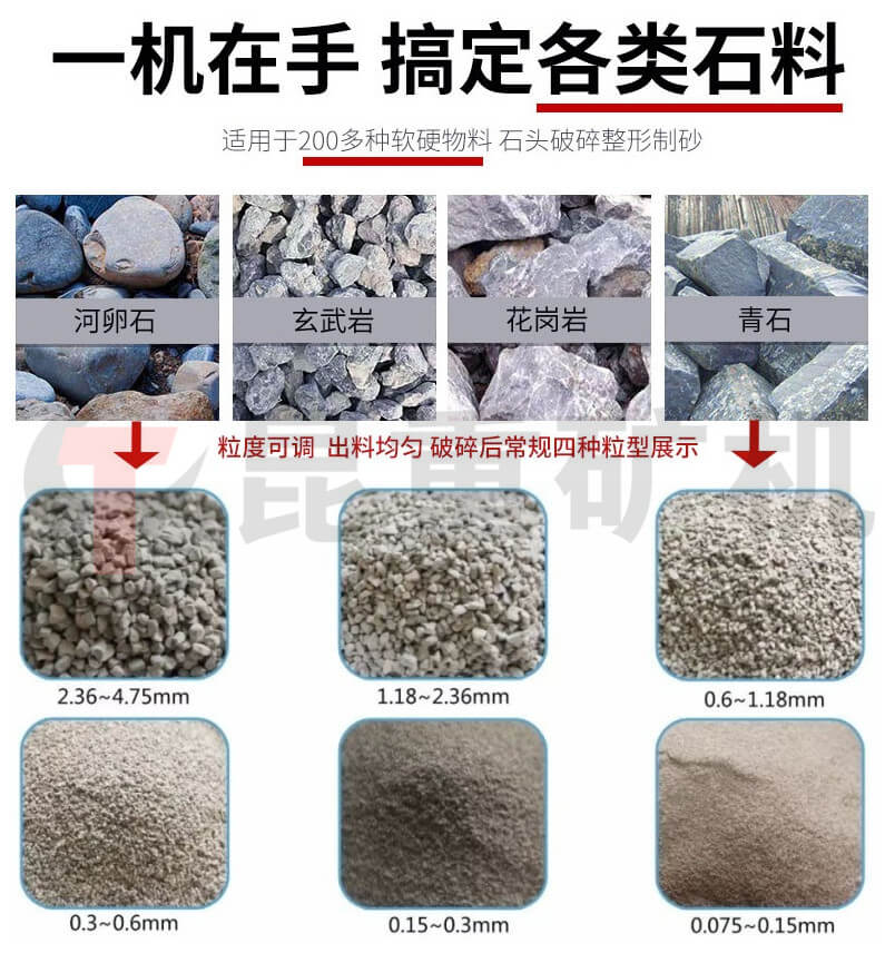 砂(shā)石破碎:石灰石、花崗岩、玄武岩(yán)、鵝卵石、建築垃圾